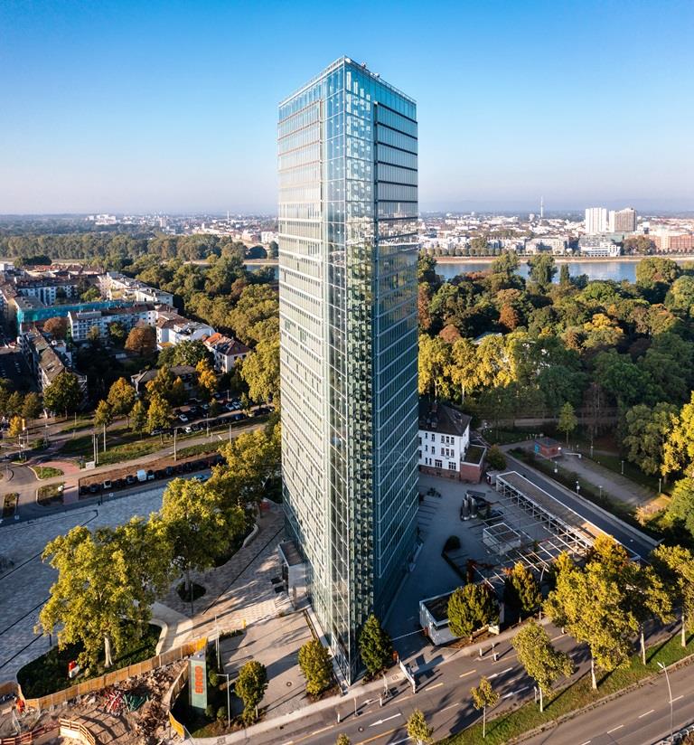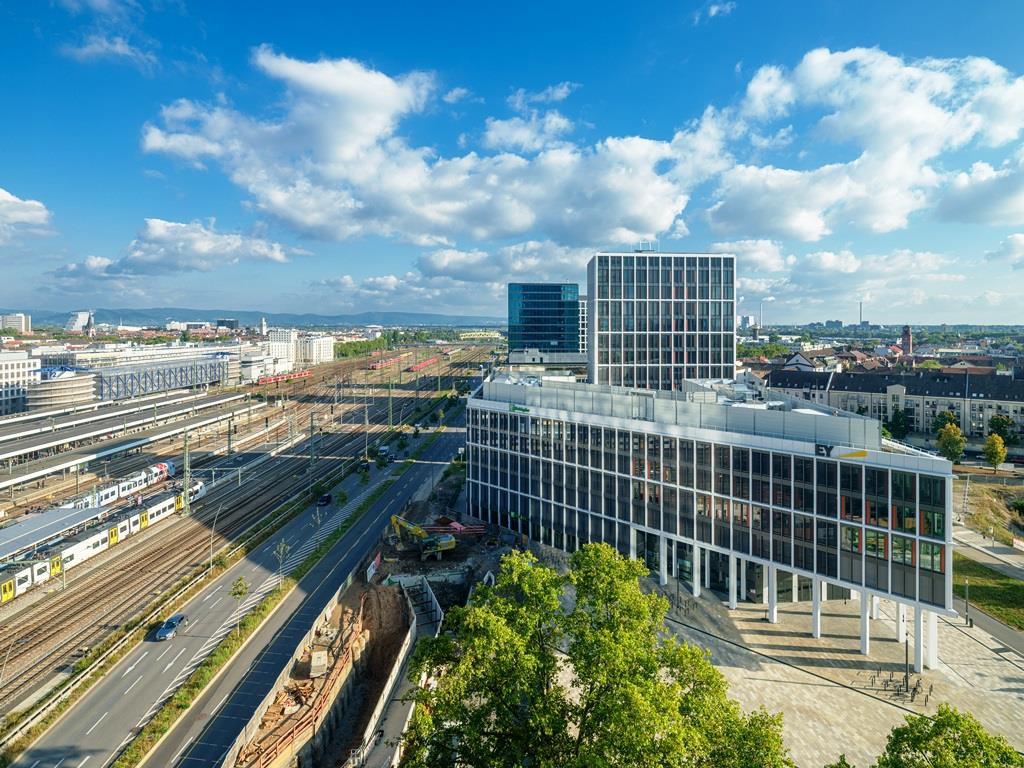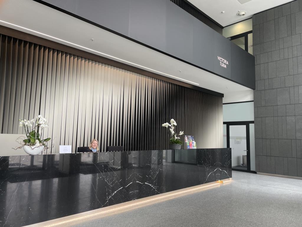 Der Victoria Turm befindet sich im Glücksteinquartier, dem repräsentativsten Bürostandort der Region und Stadtquartier mit hoher Lebensqualität, direkt am kürzlich fertiggestellten Lindenhofplatz.