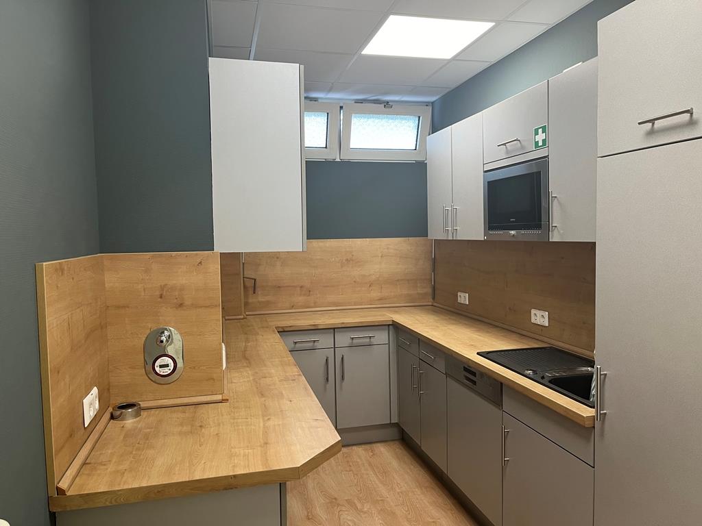 Das Bürogebäude empfängt sie mit einem repräsentativen Eingangsbereich. Ihre zukünftigen hellen Büroflächen erreichen Sie bequem und barrierefrei mit dem Aufzug. Die Räume werden nach mieteindividueller Absprache renoviert, eine großzügige Teeküche ist bereits vorhanden und der Serverraum ist klimatisiert.