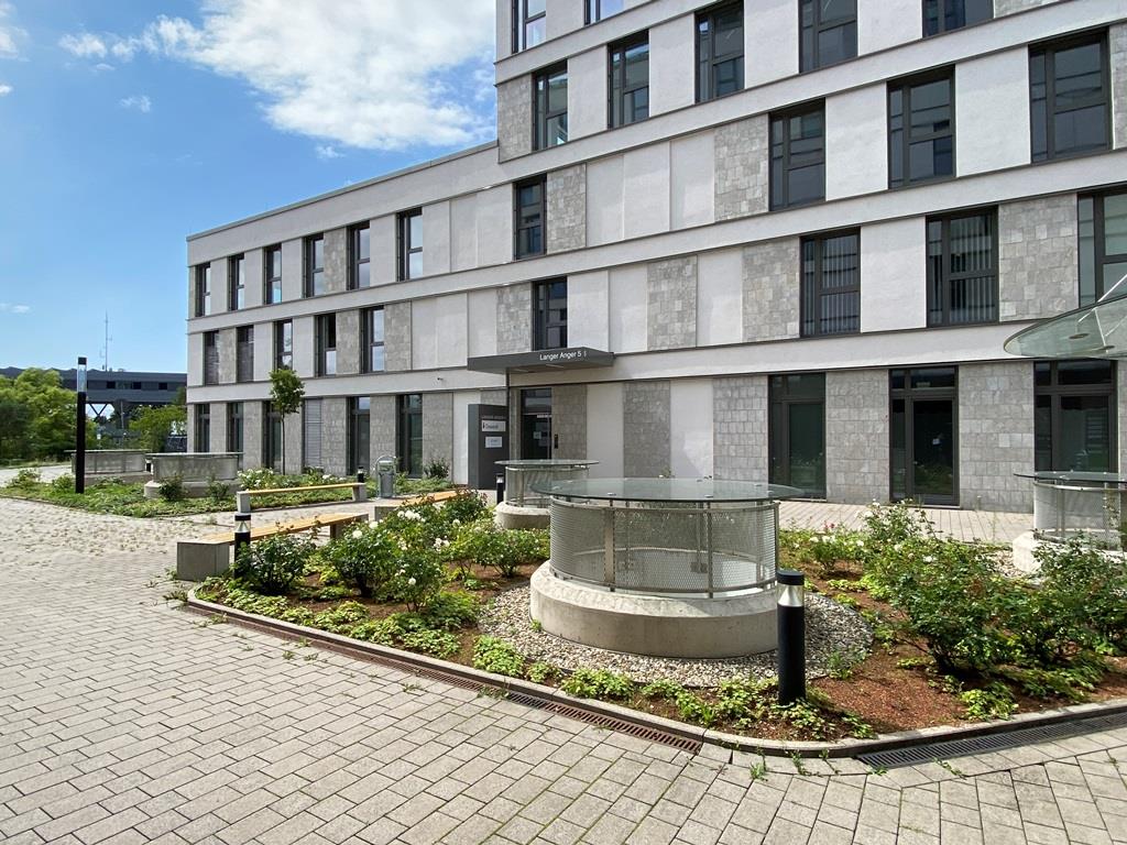 Das Gebäude liegt eingebettet in einen großzügigen Außenbereich mit zahlreichen Aufenthalts- und Verweilmöglichkeiten. Aktuell können im Gebäude ca. 6.630 m² Bürofläche angemietet werden.